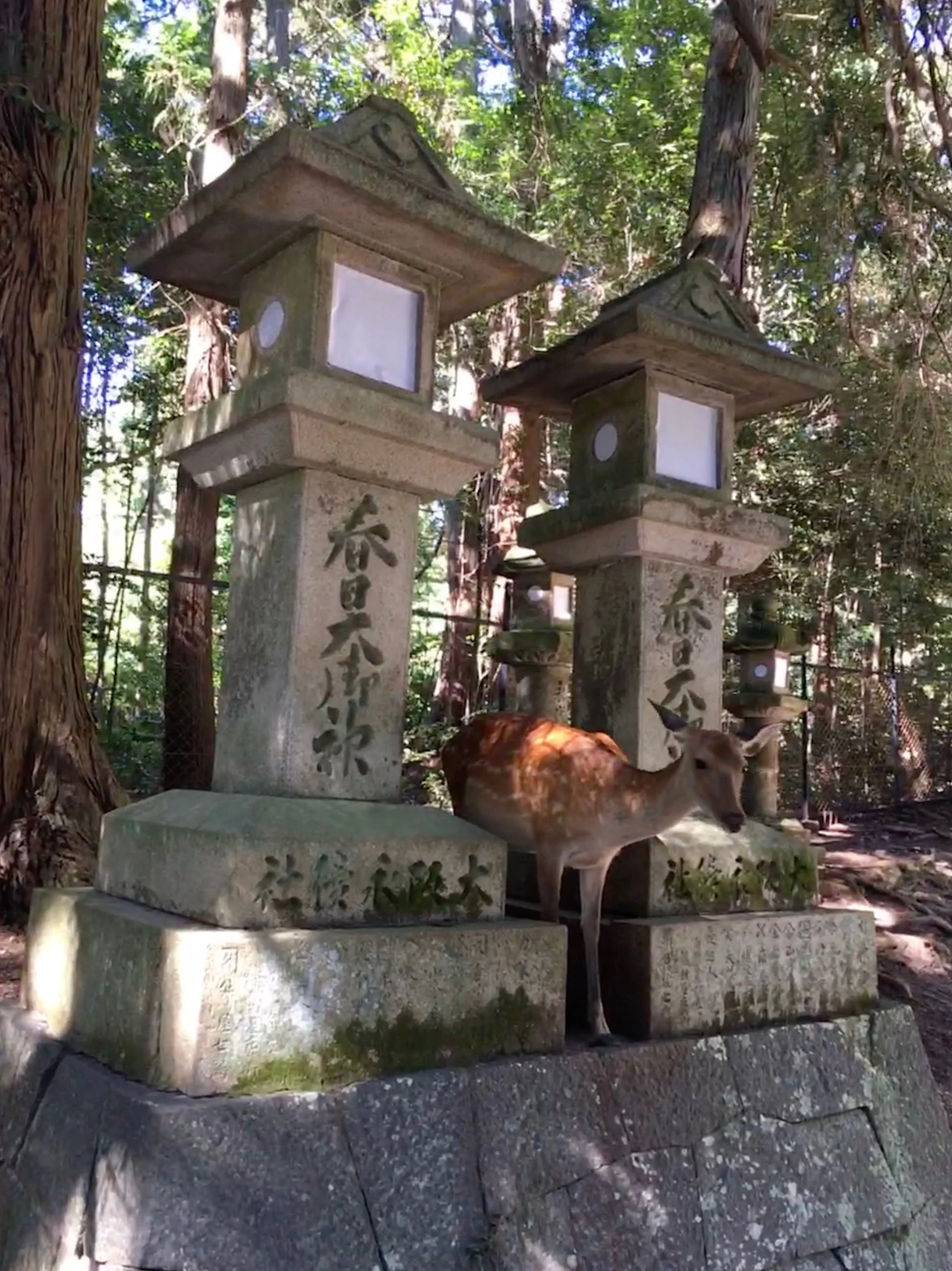 We started exploring by heading to Insuien Garden, but on the way we were sidetracked a bit by one of Nara’s famous features, the deer. The deer are everywhere in Nara. They wander the streets, hang out at temples, and sleep in front of store entrances. They are really quite friendly, though seeing people’s casual interactions with them makes me wonder how often people get bit due to selfies.